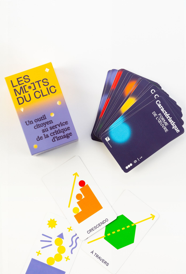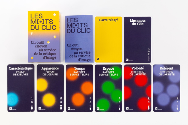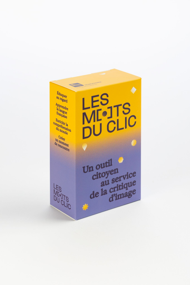 Constitué de 94 cartes-mots illustrées, LES MOTS DU CLIC accompagne les joueurs dans l’élaboration d’une critique d’image photographique, de l’observation de sa forme jusqu’aux engagements artistiques du photographe. Espace de libre parole et d’écoute, LES MOTS DU CLIC initie un moment d’échange, de négociation et d’affirmation de soi dans le cadre d’un projet commun. C’est un outil citoyen au service de la critique d’image.