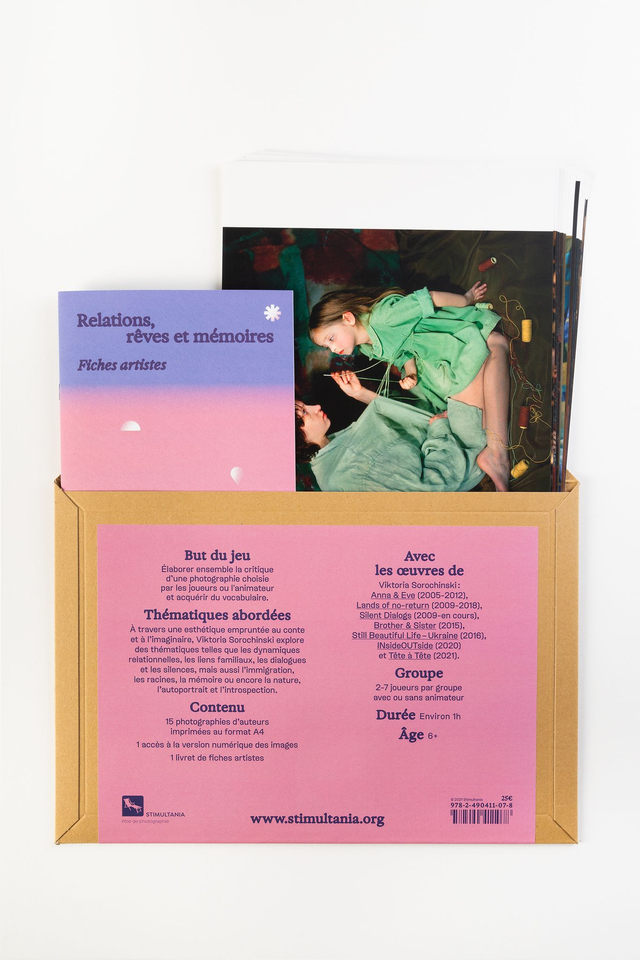 THÉMATIQUES ABORDÉES : Ce support de jeu est constitué de quinze images provenant de différentes séries réalisées par la photographe Viktoria Sorochinski. Bien qu’intimes et propres à son travail personnel, les notions que l’artiste soulève ont une résonance universelle et sont un riche point de départ pour discuter et débattre.