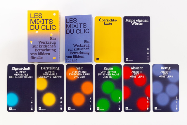Ob Kunst-, Presse- oder Werbefoto, ob Druck, Plakat oder Projektion: Wie betrachtet und beschreibt man ein Bild? Wie analysiert man dessen Aufbau und die Absicht des Künstlers? Ziel des Spiels LES MOTS DU CLIC ist es, dem Zuschauer bei dieser Fragestellung zu helfen. Es ist ein Beobachtungsspiel und ein gesellschaftspolitisches Denkspiel, beim dem auch der Wortschatz erweitert wird.